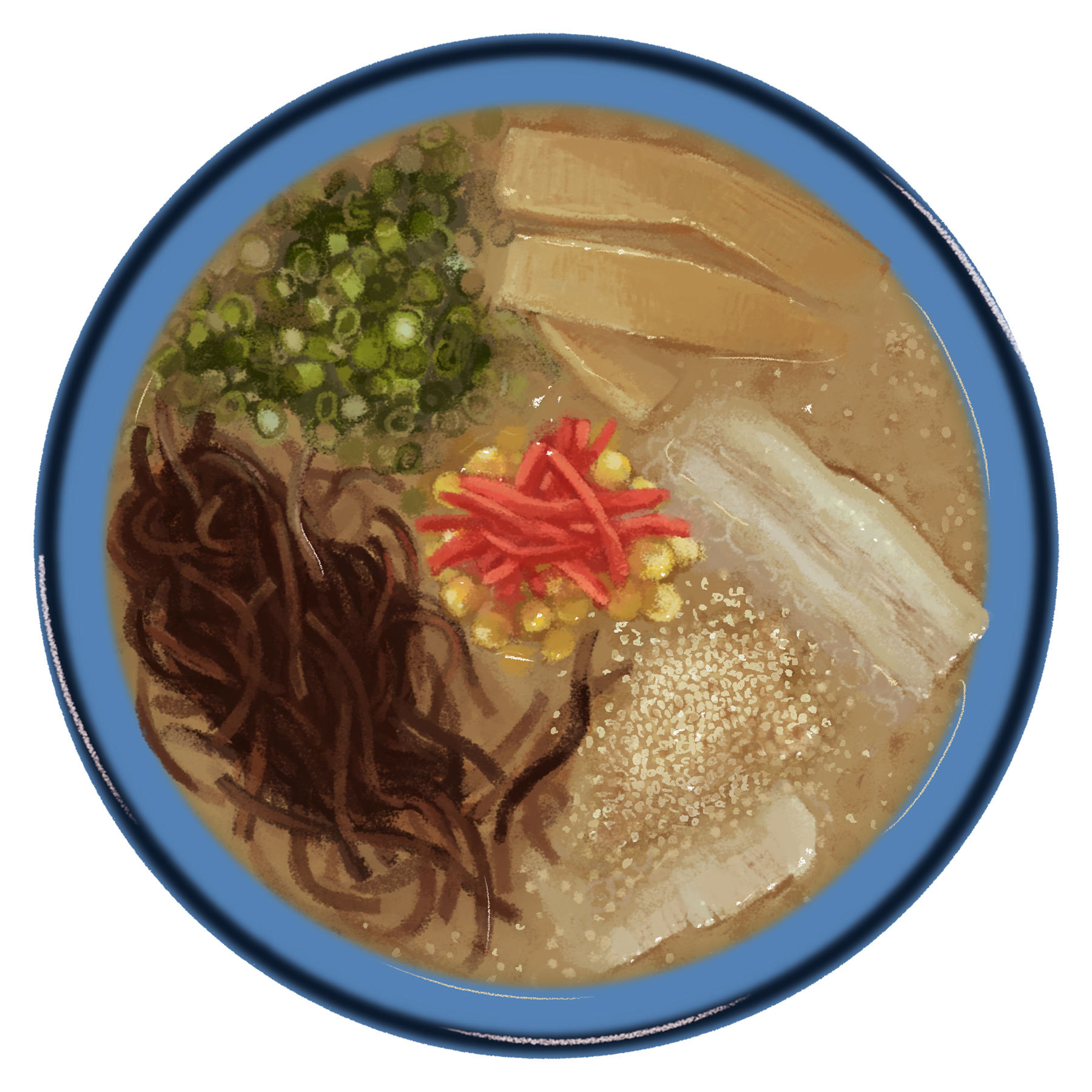とんこつと背脂のこってりとしたスープを一口すすると、口の中で白胡麻の香ばしい風味が広がります。